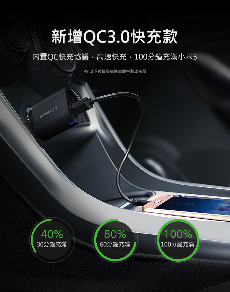 UGREEN綠聯 車用快充擴充點煙器雙USB 3.4A (UGR-50295)