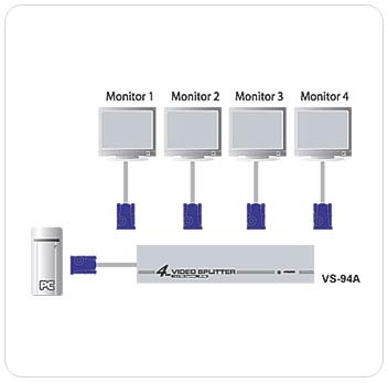 VS94A視訊分享器不僅可以將VGA、XGA、SVGA、UXGA或multisync monitor視訊訊號複製至4組輸出設備,並可強化視訊訊號以延長傳輸距離達65公尺。透過堆疊串接可分別支援多達64台顯示設備及提供頻寬高達350MHz。VS94A適用於加強與廣播視訊資料至公眾環境、由安全的地點監控工作環境、或針對企業或教室內的教育訓練提供高品質視訊畫面。