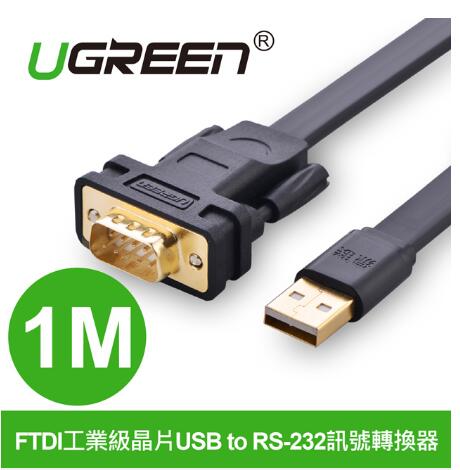 UGREEN綠聯 FTDI工業級晶片USB to RS-232訊號轉換線 1米(20206)