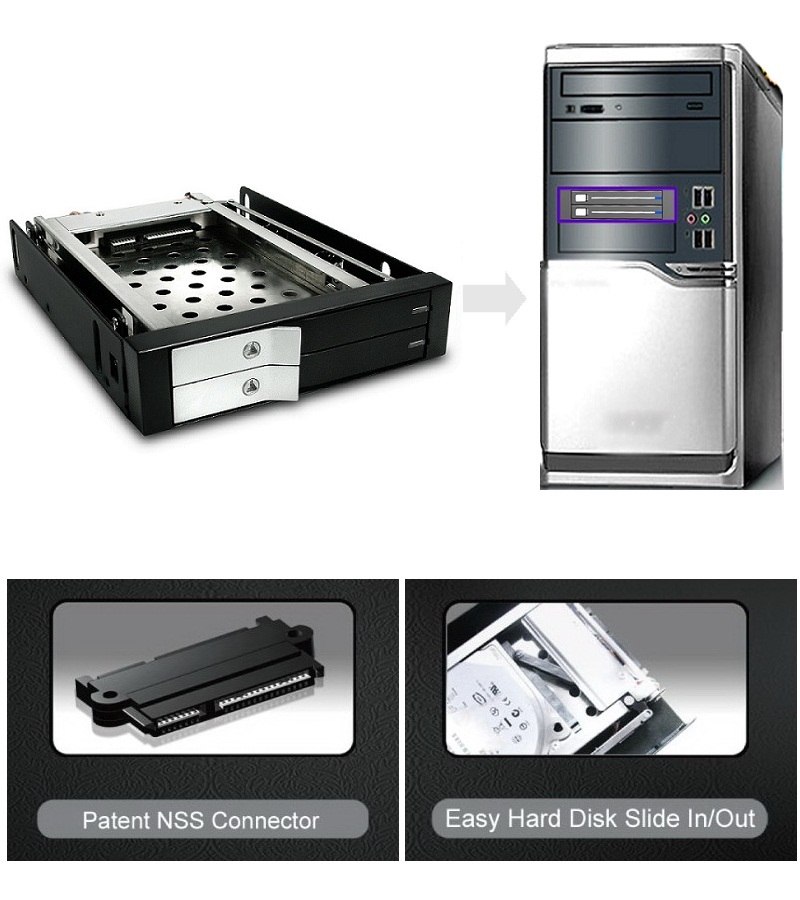 ◆ 支援2 x2.5吋 SAS / SATA I/II/III硬碟或SSD固態硬碟