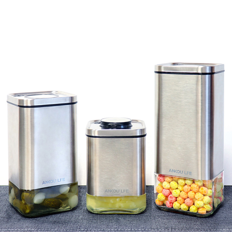 ◆商品名稱:【安酷生活】方形不鏽鋼玻璃保鮮密封罐-3件禮盒組