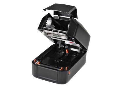 全機為貝殼式開蓋設計,1吋與0.5吋管心碳帶共用設計,5"大容量標籤紙空間,雙感應紙張偵測系統,能準確的校正紙張,內建RTC即時時鐘功能,操作面板搭配8個LED訊息顯示燈號,讓使用者容易明瞭使用,適用於商場、零售、醫療、政府機關、辦公室自動化、倉儲管理、物流標籤等應用。